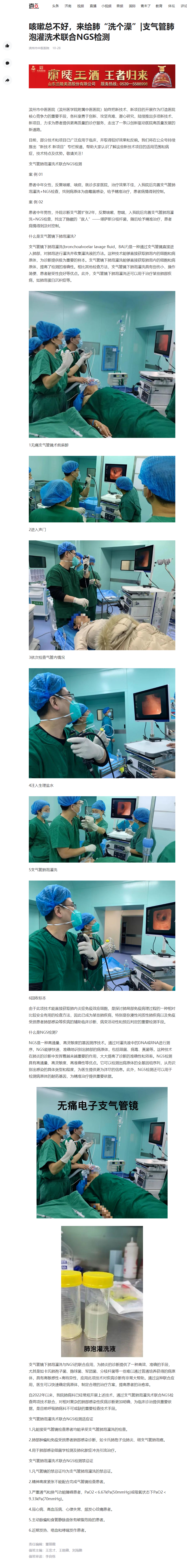 【齐鲁壹点】咳嗽总不好,来给肺“洗个澡”|支气管肺泡灌洗术联合NGS检测