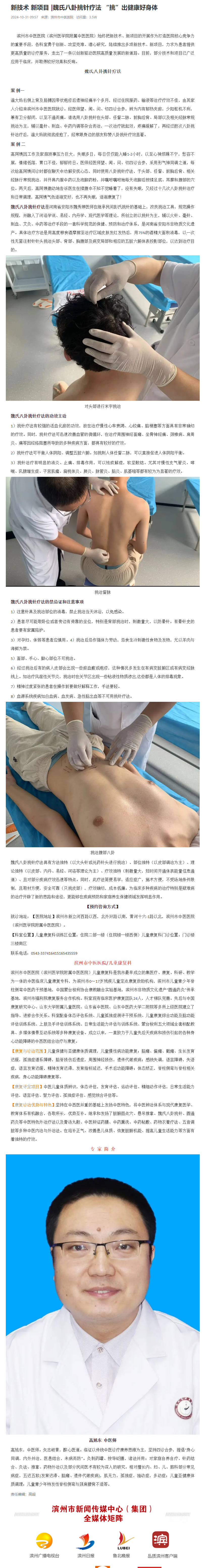 【品质滨州】新技术 新项目 |魏氏八卦挑针疗法 “挑”出健康好身体