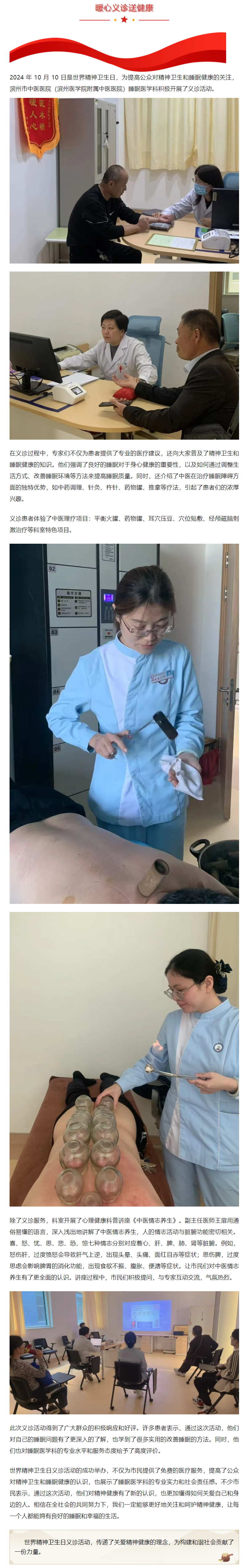 滨州市中医医院(滨州医学院附属中医医院)睡眠医学科世界精神卫生日义诊活动圆满举行