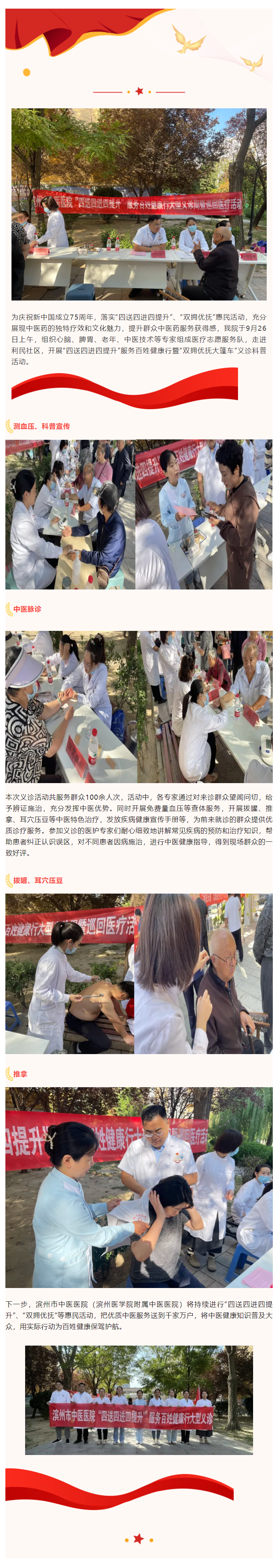 滨州市中医医院(滨州医学院附属中医医院)开展“四送四进四提升”服务百姓健康行暨“双拥优抚大篷车”义诊科普活动