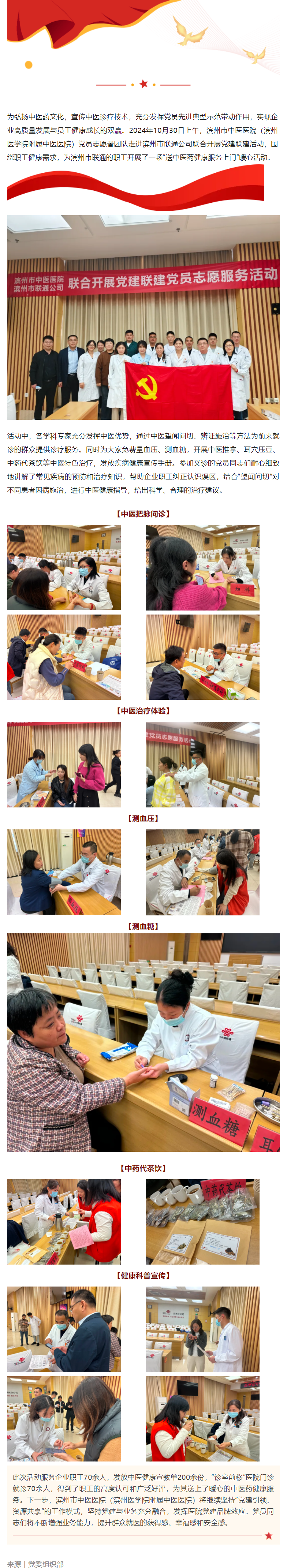 【进企业】滨州市中医医院(滨州医学院附属中医医院)走进滨州市联通公司开展党建联建党员义诊科普活动