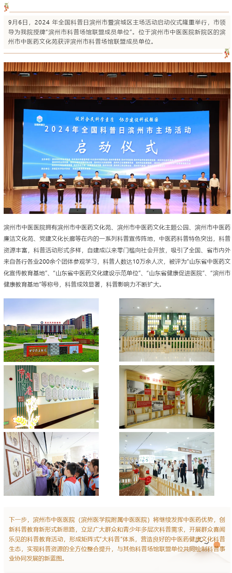 喜报 | 滨州市中医医院(滨州医学院附属中医医院)获评滨州市科普场馆联盟成员单位