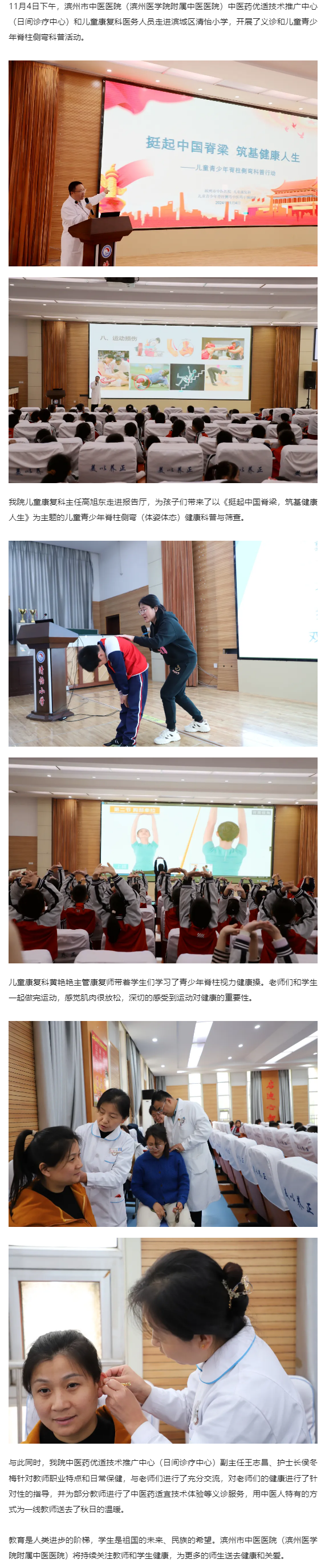 义诊科普 | 滨州市中医医院(滨州医学院附属中医医院)走进滨城区清怡小学开展义诊和脊柱侧弯科普活动