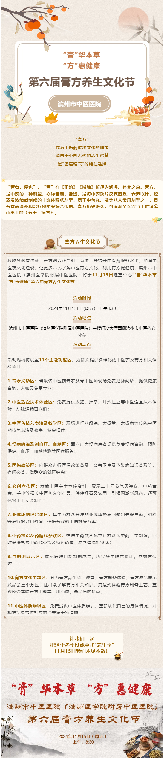 “膏”华本草,“方”惠健康——滨州市中医医院(滨州医学院附属中医医院)第六届膏方养生文化节向您发出冬季健康邀请函!