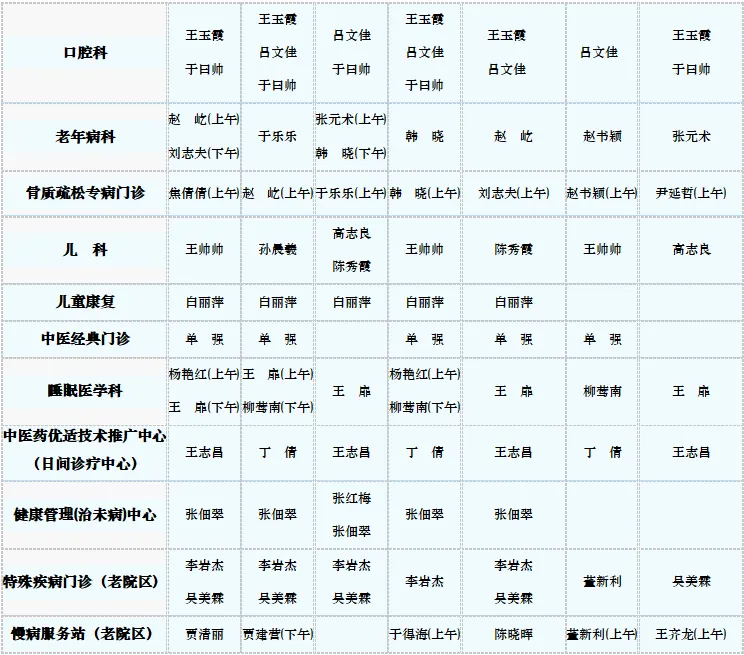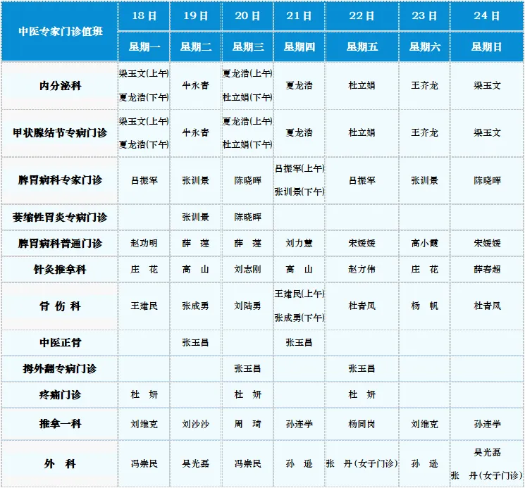 中医专家门诊值班表