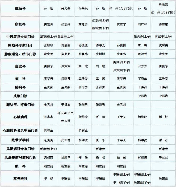 专家门诊值班表