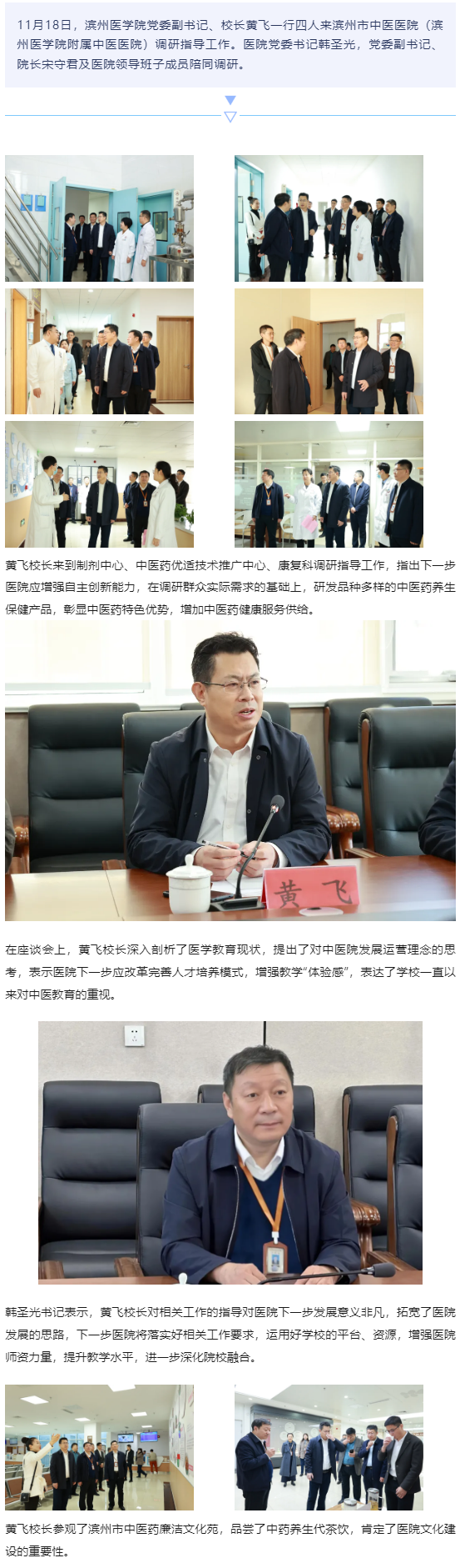 滨州医学院党委副书记、校长黄飞一行来我院调研指导工作