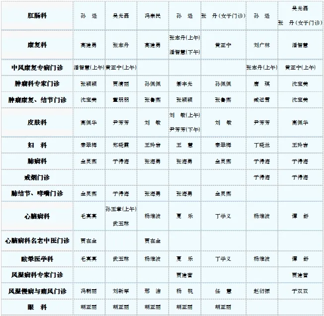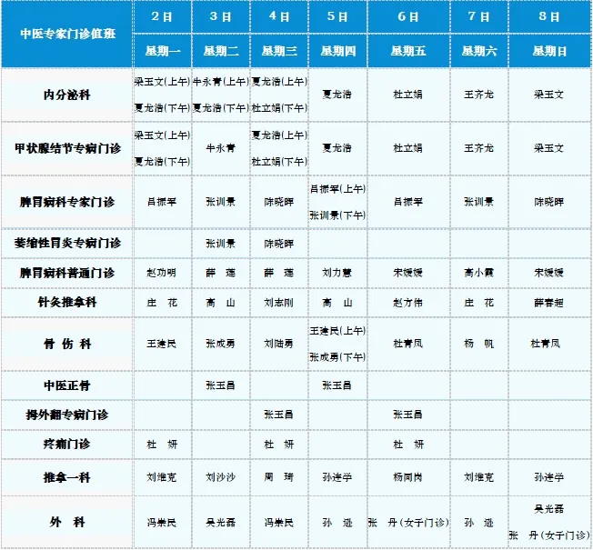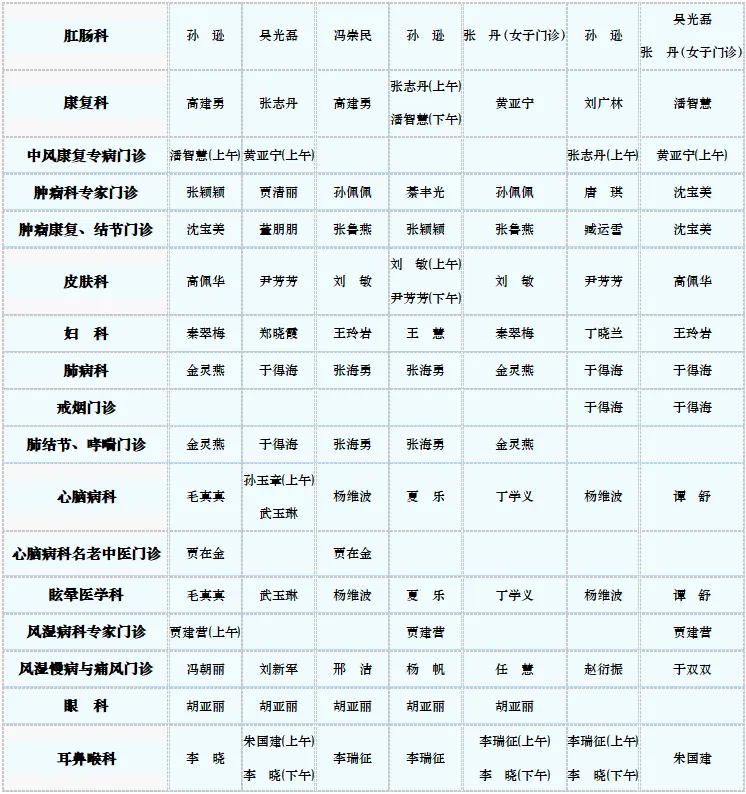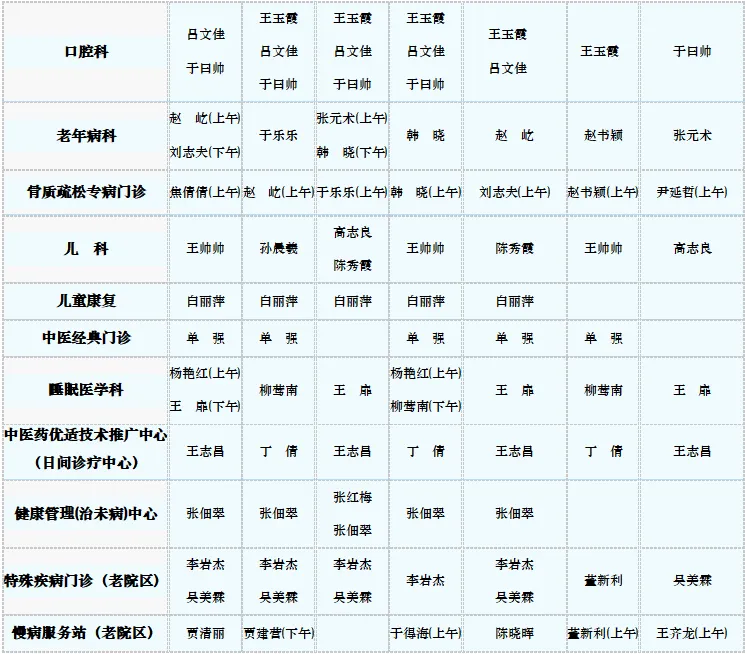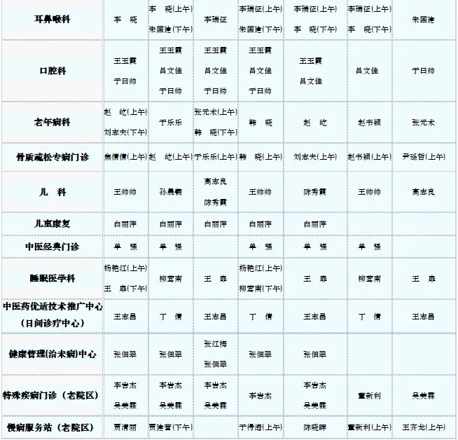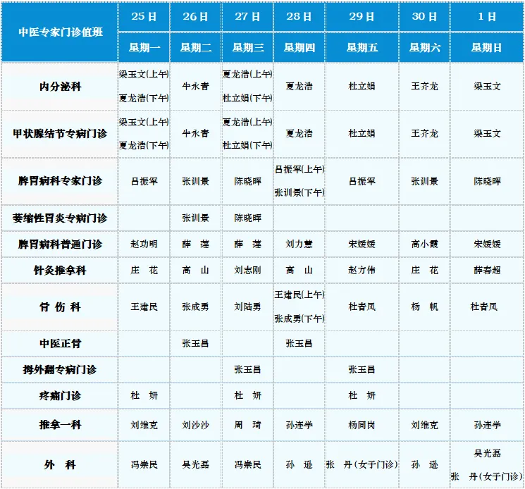 滨州市中医医院(滨州医学院附属中医医院)2024年11月25日-12月8日门诊值班表