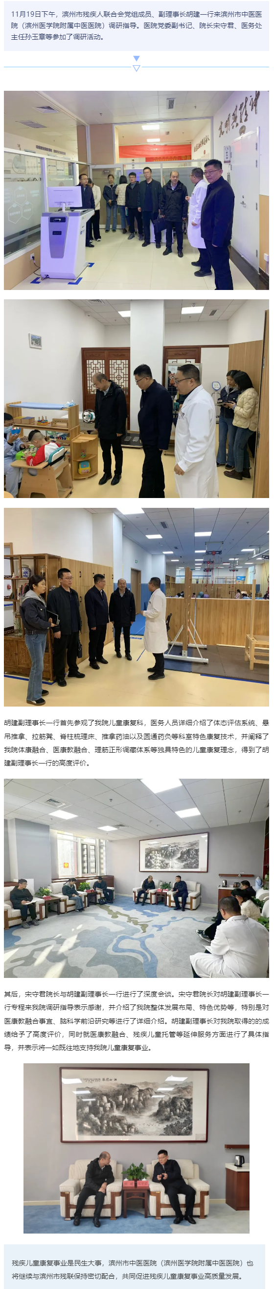 滨州市残联胡建副理事长一行来滨州市中医医院(滨州医学院附属中医医院)调研指导