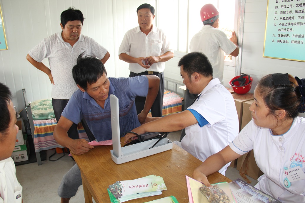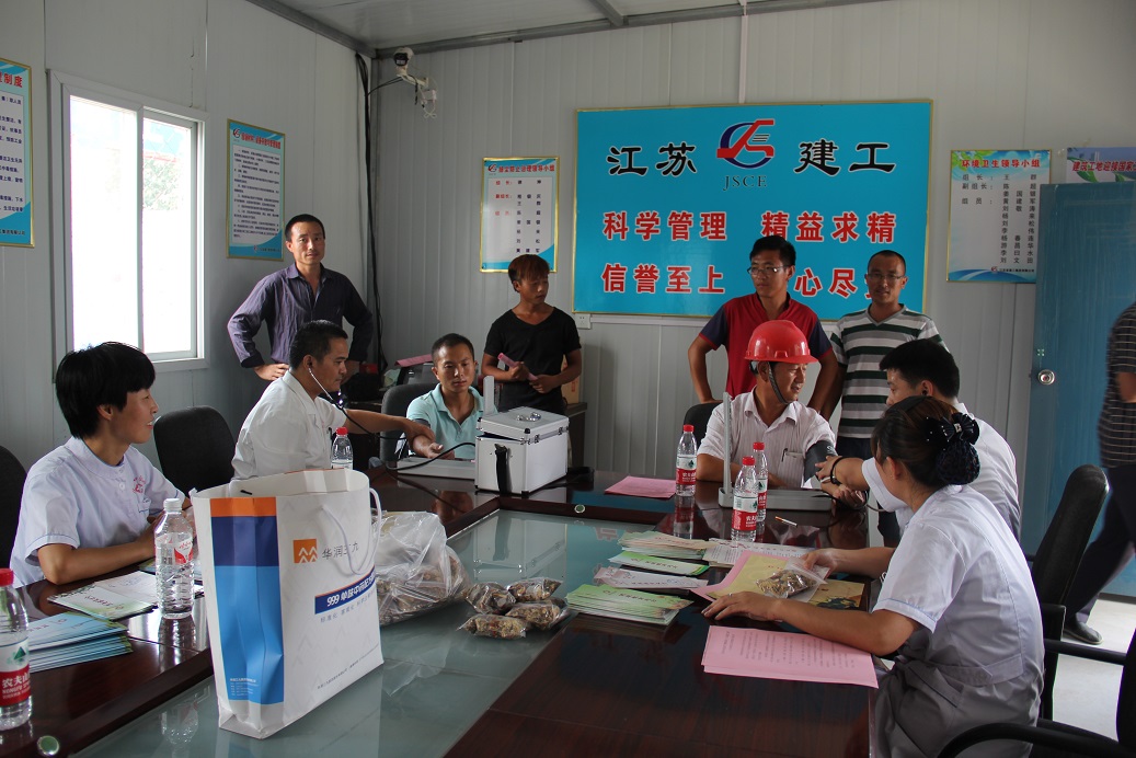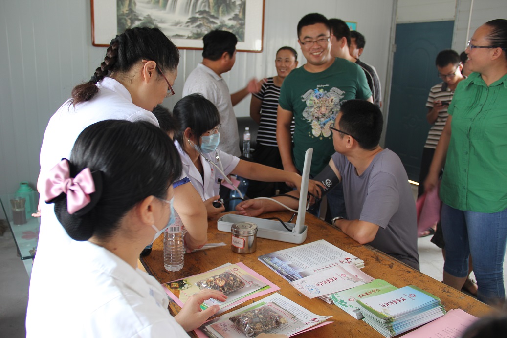 为普及健康知识,提高农民工自我保健意识和能力,滨州市总工会携手我院于8月18日联合组织义诊活动走进滨州市财源建工和江苏建工两家建筑工地,开展以“送健康 进工地”为主题的义诊活动,为奋战在一线的建筑工人送医送药送健康。