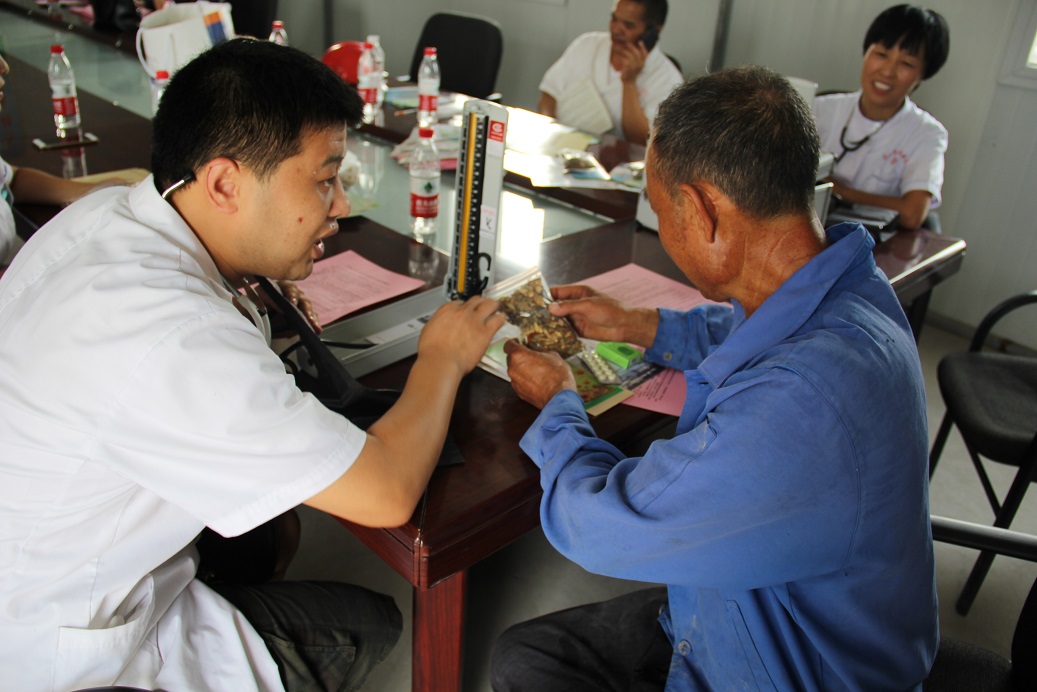 活动开始后,我院医护专家团队立即忙碌起来:为工人义诊、测体温、测血压、送上院内自制中药降温保健茶、PPA、风油精、发放健康宣传资料、回答农民工的各种医疗咨询等,受到工地建筑工人一致欢迎。工人于师傅说:“我一年到头在工地上忙碌,身体本来就不好,都是老毛病,不是不去看,而是没有多余的时间,也没有多少钱,没想到你们大夫亲自到我们工地上给我送药查体,我心里感觉非常温暖!”这次活动为100余名农民工进行了免费义诊,发放宣传材料500余份。