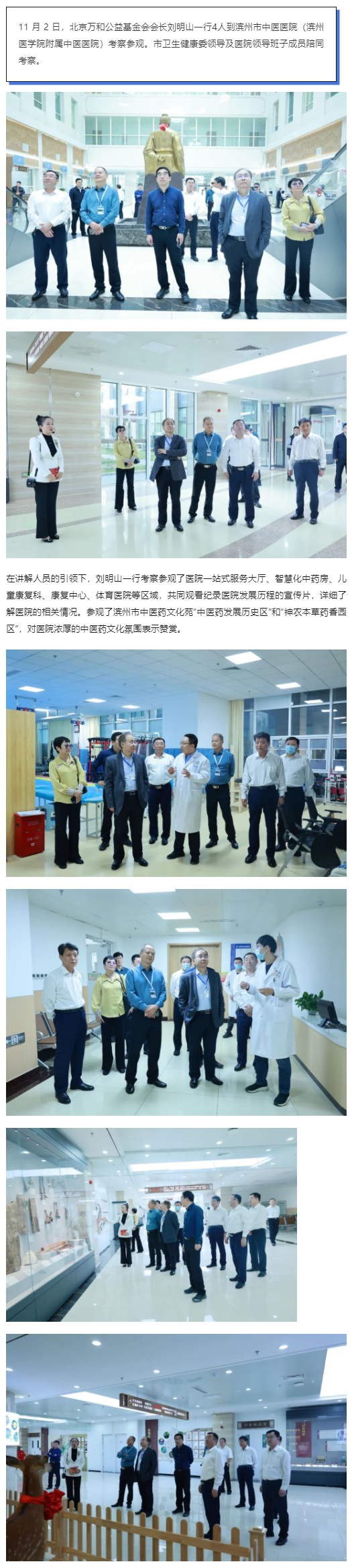 北京万和公益基金会理事长刘明山一行来滨州市中医医院(滨州医学院附属中医医院)考察参观