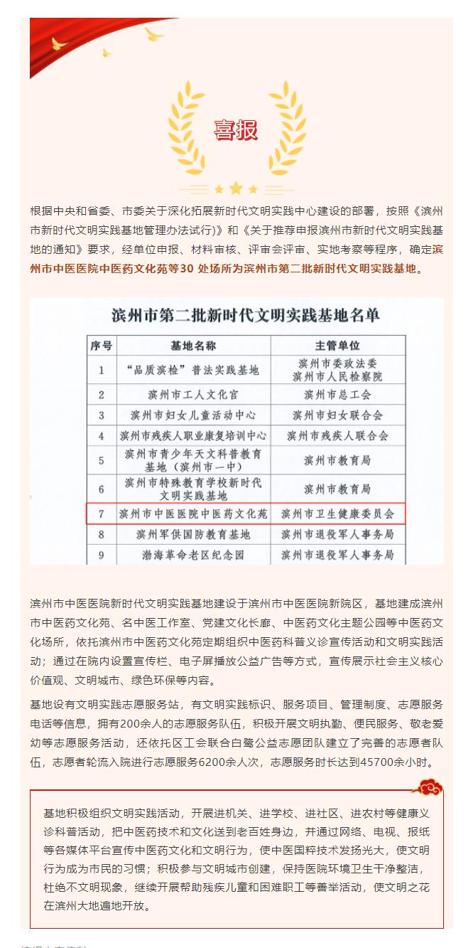 喜报 | 滨州市中医医院中医药文化苑获评滨州市第二批新时代文明实践基地