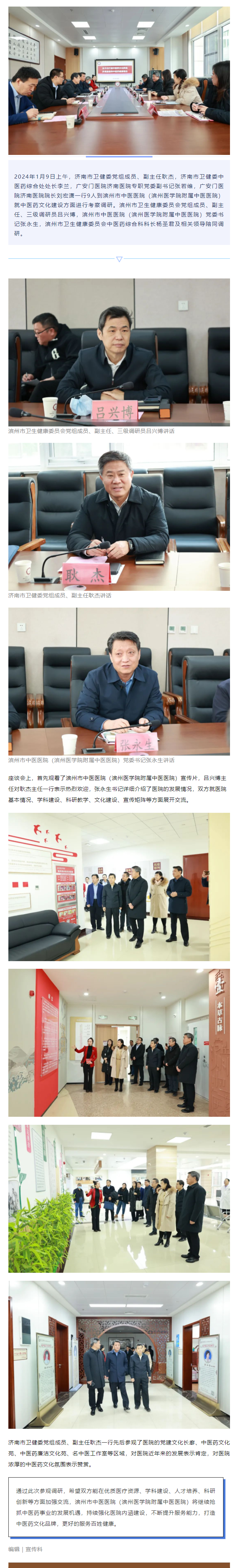 广安门医院济南医院一行到滨州市中医医院(滨州医学院附属中医医院)考察调研