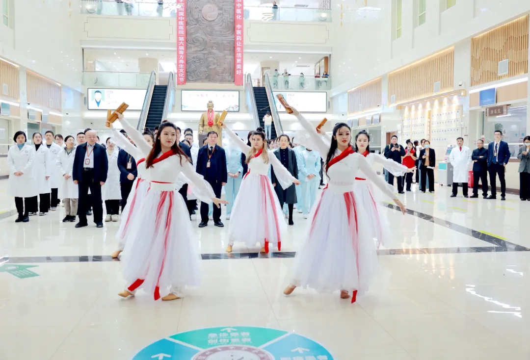 医院中医药文化志愿者团队进行了竹简舞表演。白衣竹简间,缓缓展开的不仅是美妙的舞姿,更是中医先贤钻研中医药理论、传承中医药文化的历史。
