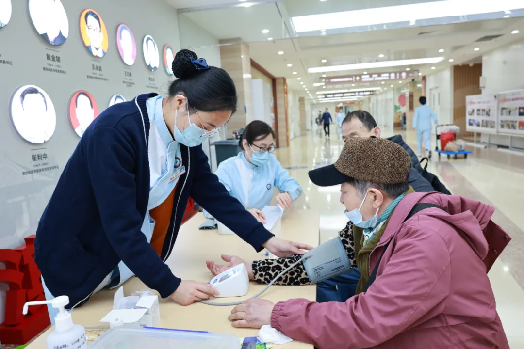 在慢病防治及测血压、血糖区,针对老年人中常见的高血压、糖尿病等慢性病,医生们详细询问病史,并根据患者的实际情况给予用药指导,免费提供测量血压、血糖等医疗服务。