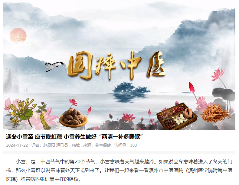 【品质滨州】迎冬小雪至 应节晚虹藏 小雪养生做好“两清一补多睡眠”