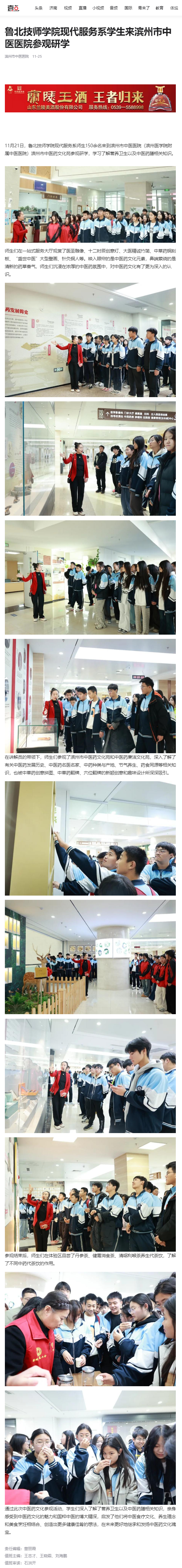 【齐鲁壹点】鲁北技师学院现代服务系学生来滨州市中医医院参观研学
