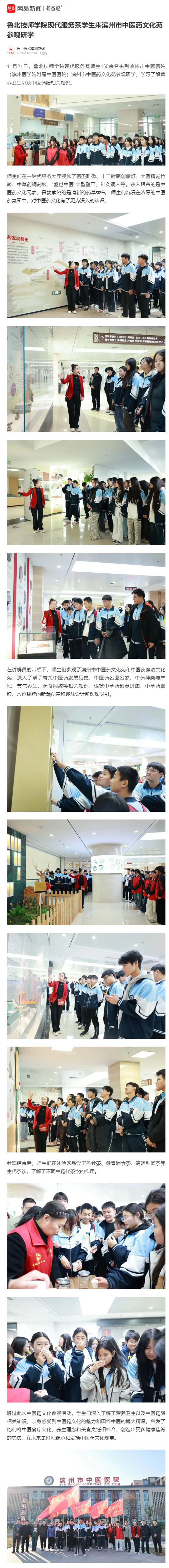 【鲁中晨报滨州新闻】鲁北技师学院现代服务系学生来滨州市中医药文化苑参观研学