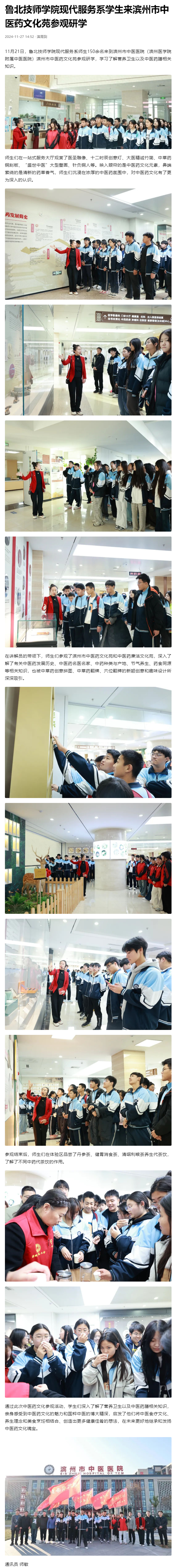 【今日头条滨周到】鲁北技师学院现代服务系学生来滨州市中医药文化苑参观研学