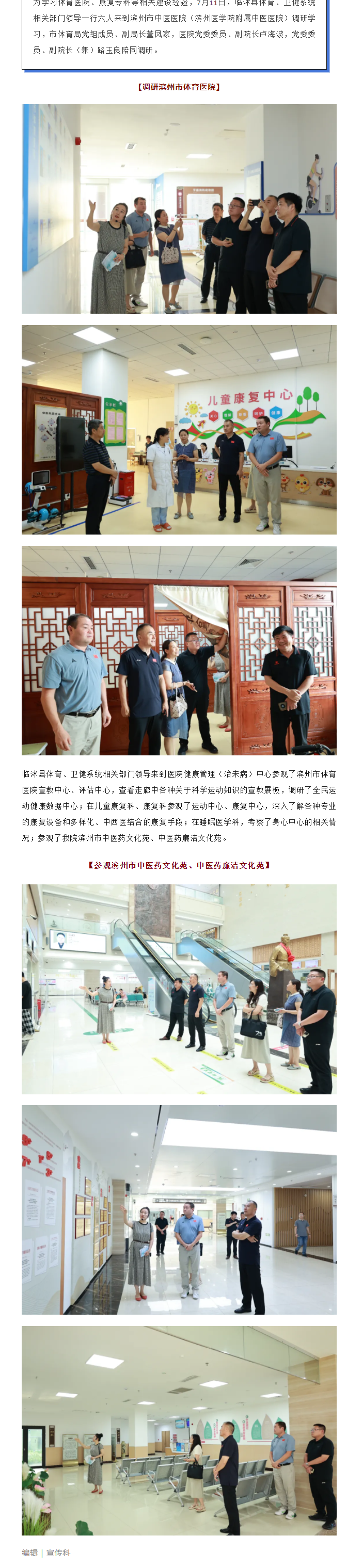 临沭县体育、卫健系统一行六人来到滨州市中医医院调研学习