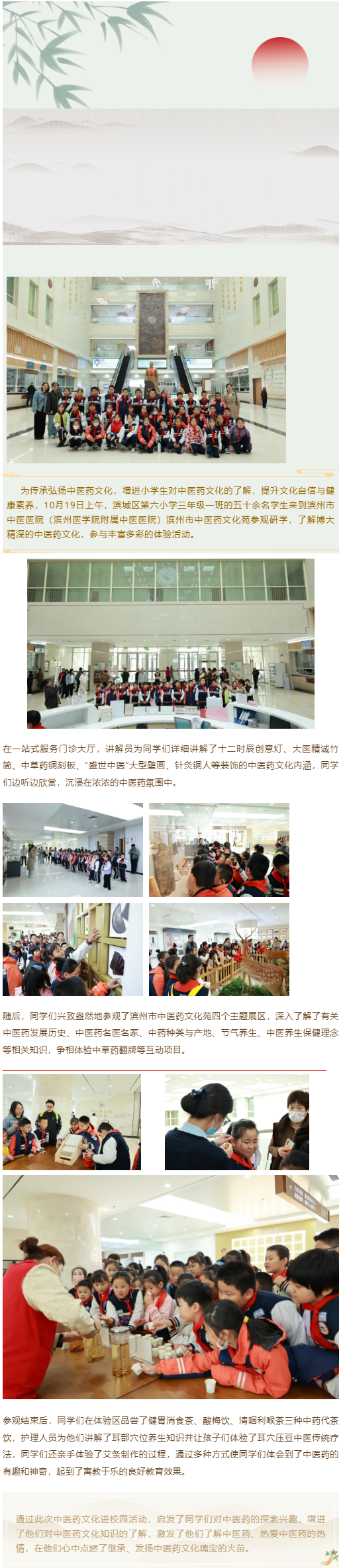 滨城区第六小学学生来我院滨州市中医药文化苑参观研学