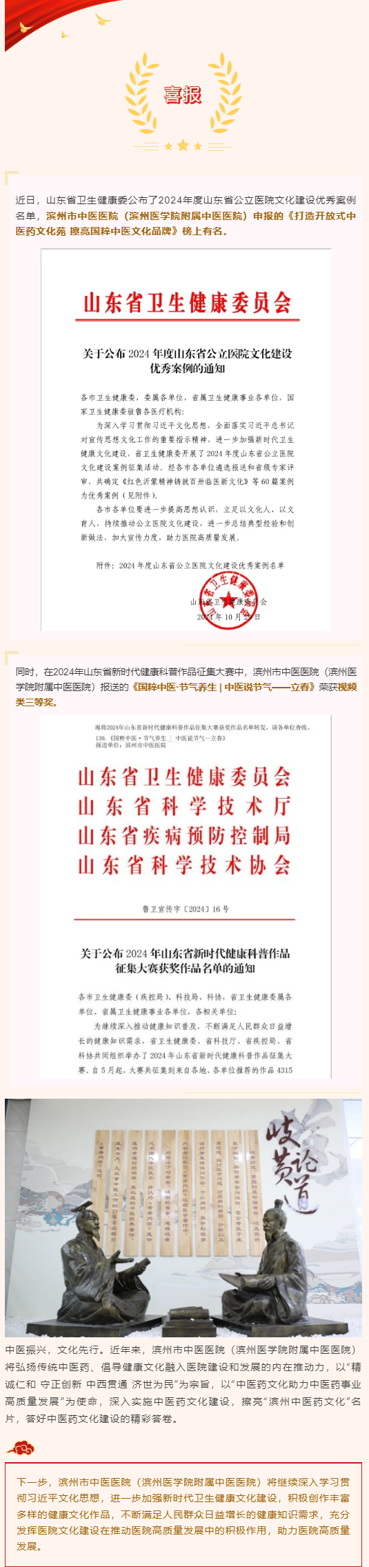 省级喜报+2!滨州市中医医院(滨州医学院附属中医医院)文化建设捷报频传