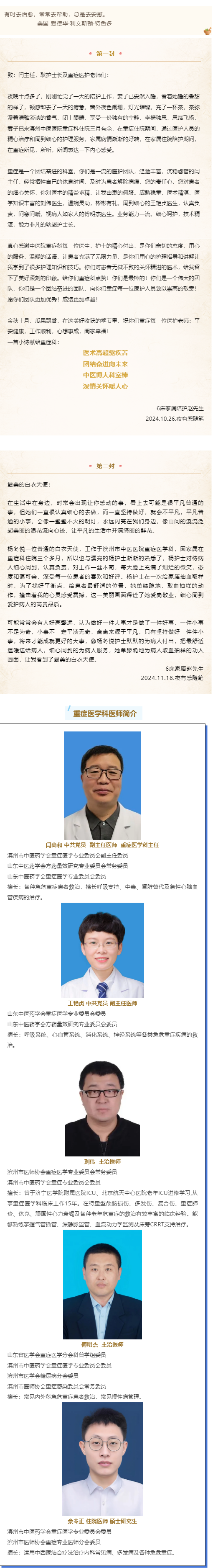 来自6床家属的两封告白信