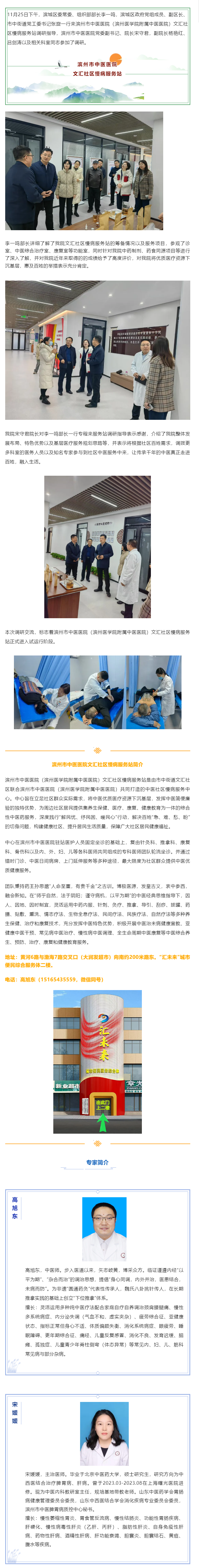 滨城区区委常委、组织部部长李一鸣一行到我院文汇社区慢病服务站调研指导