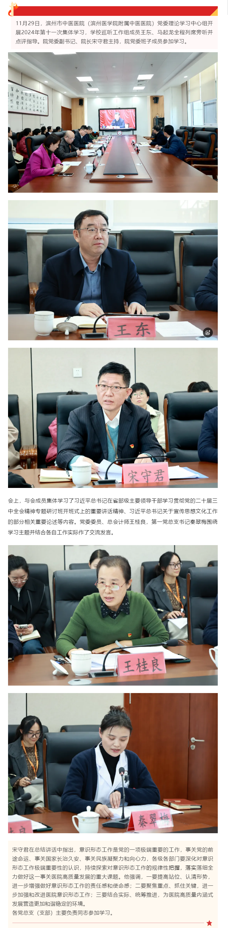 滨州市中医医院(滨州医学院附属中医医院)党委理论学习中心组开展2024年第十一次集体学习