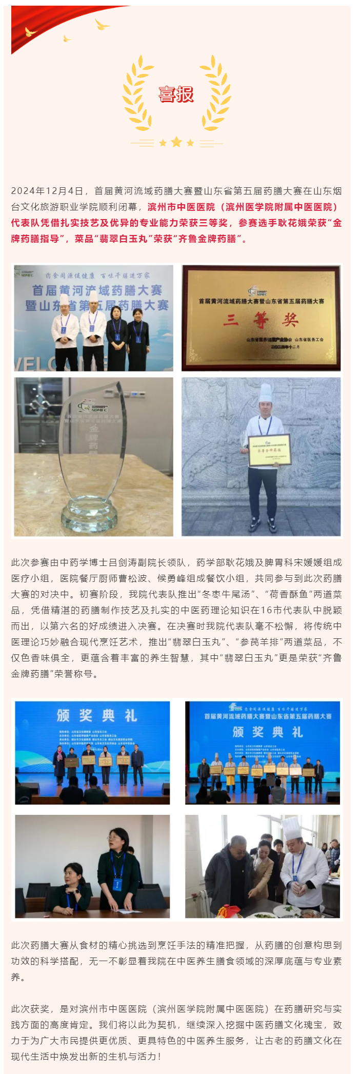 喜报 | ​滨州市中医医院(滨州医学院附属中医医院)代表队荣获首届黄河流域药膳大赛暨山东省第五届药膳大赛三等奖