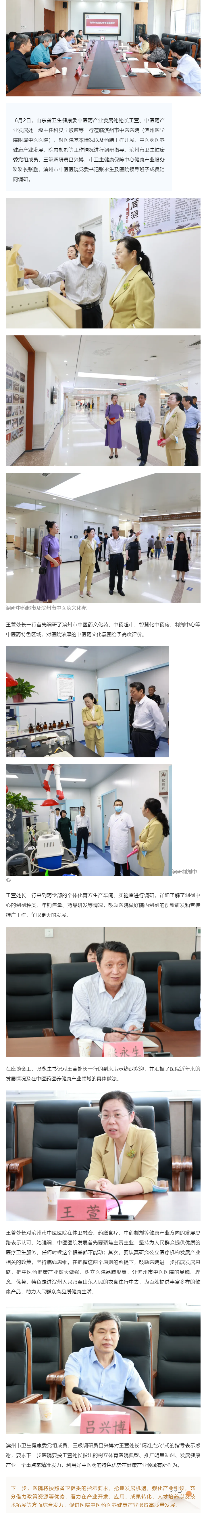 省卫生健康委中医药产业发展处处长王萱一行莅临滨州市中医医院(滨州医学院附属中医医院)调研指导