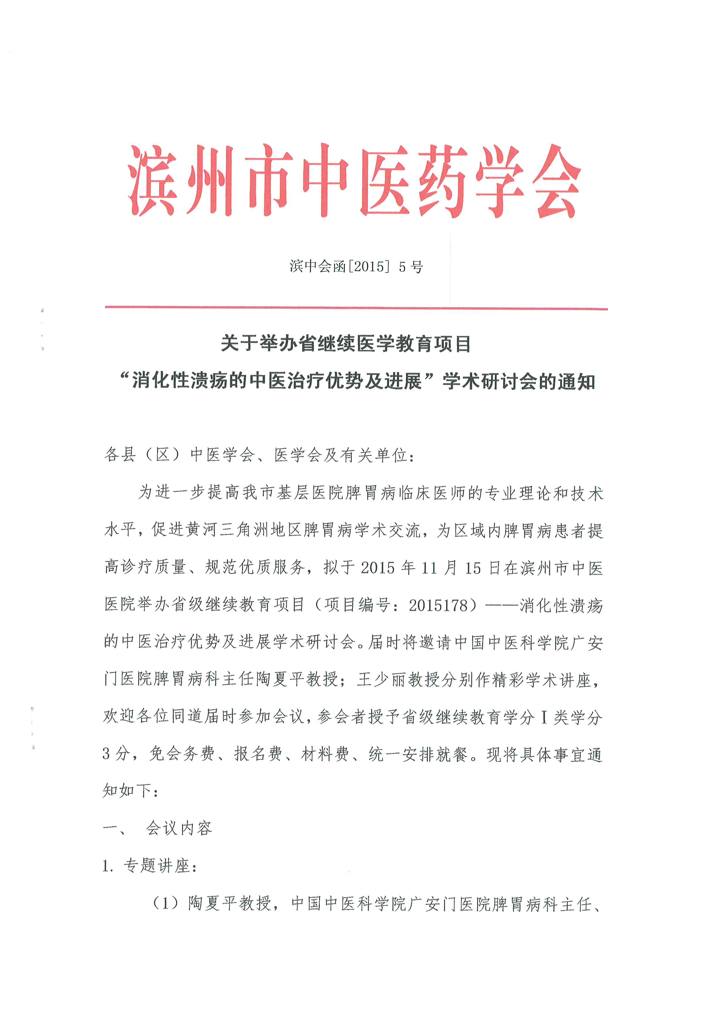 关于举办省继续医学教育项目“消化性溃疡的中医治疗优势及进展”学术研讨会的通知