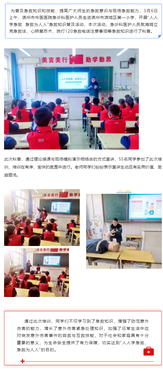 健康科普 | 滨州市中医医院急救科普培训走进滨州市滨城区第一小学