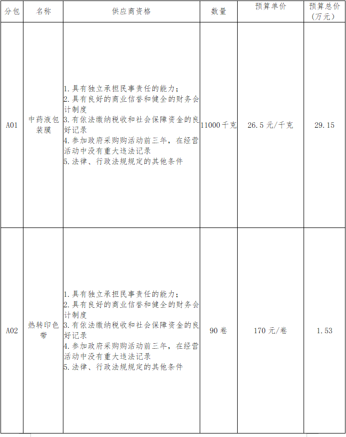 滨州市中医医院中药液包装膜、热转印色带采购项目公示