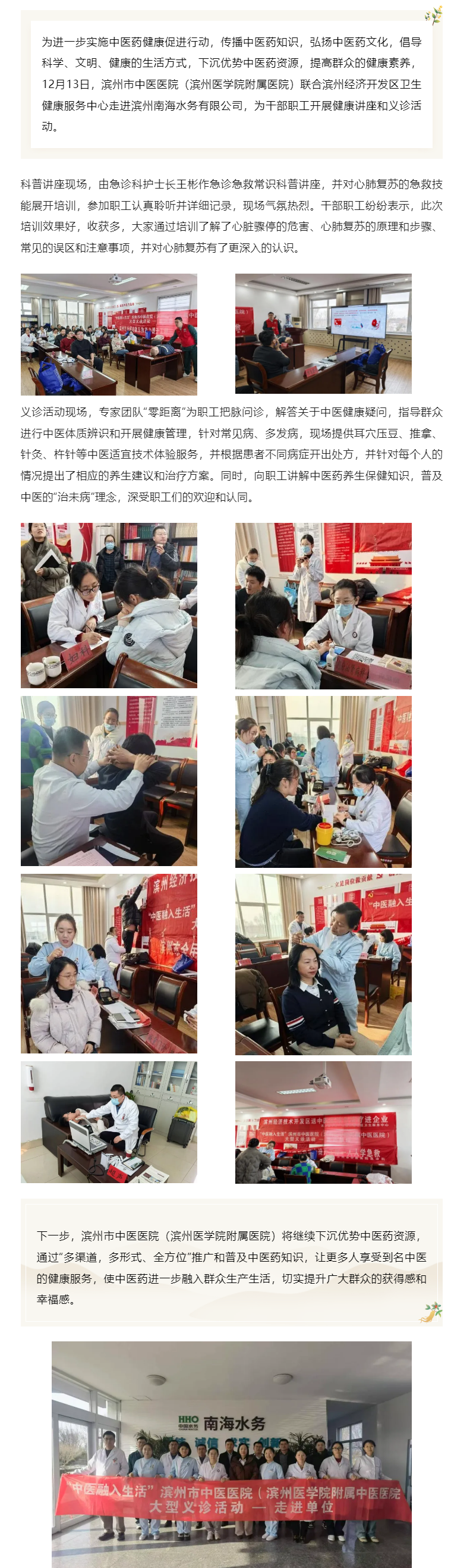中医融入生活 | 滨州市中医医院(滨州市医学院附属中医医院)义诊走进滨州南海水务有限公司