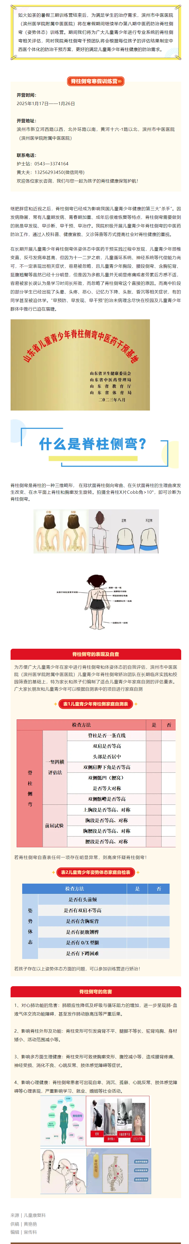 滨州市中医医院(滨州医学院附属中医医院)中医药防治脊柱侧弯(姿势体态)寒假训练营开营啦!趁寒假,行动起来!