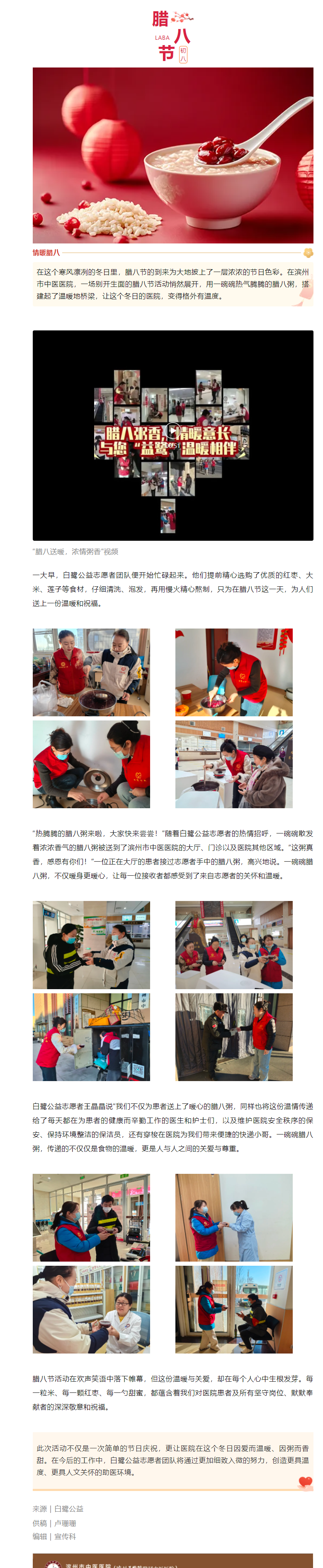 一家有温度的医院,腊八节特别活动——白鹭公益志愿者送上暖心腊八粥 “腊八送暖,浓情粥香”