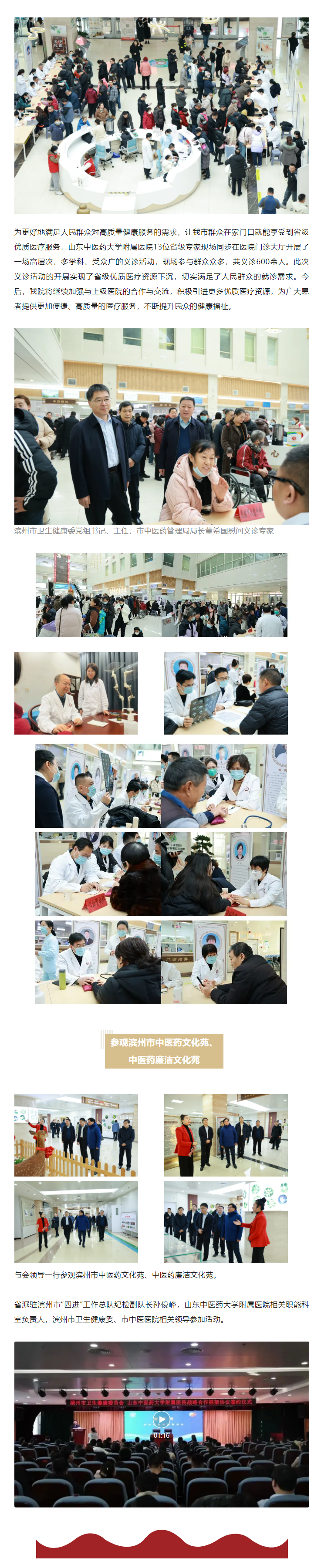 滨州市卫生健康委与山东中医药大学附属医院签署战略合作框架协议签约暨培训、义诊系列活动在我院顺利举行