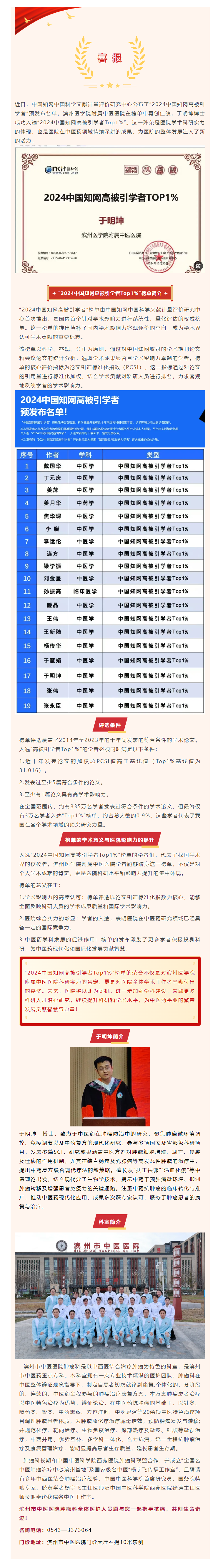 喜报!滨州市中医医院(滨州医学院附属中医医院)荣登“2024中国知网高被引学者Top1%”榜单