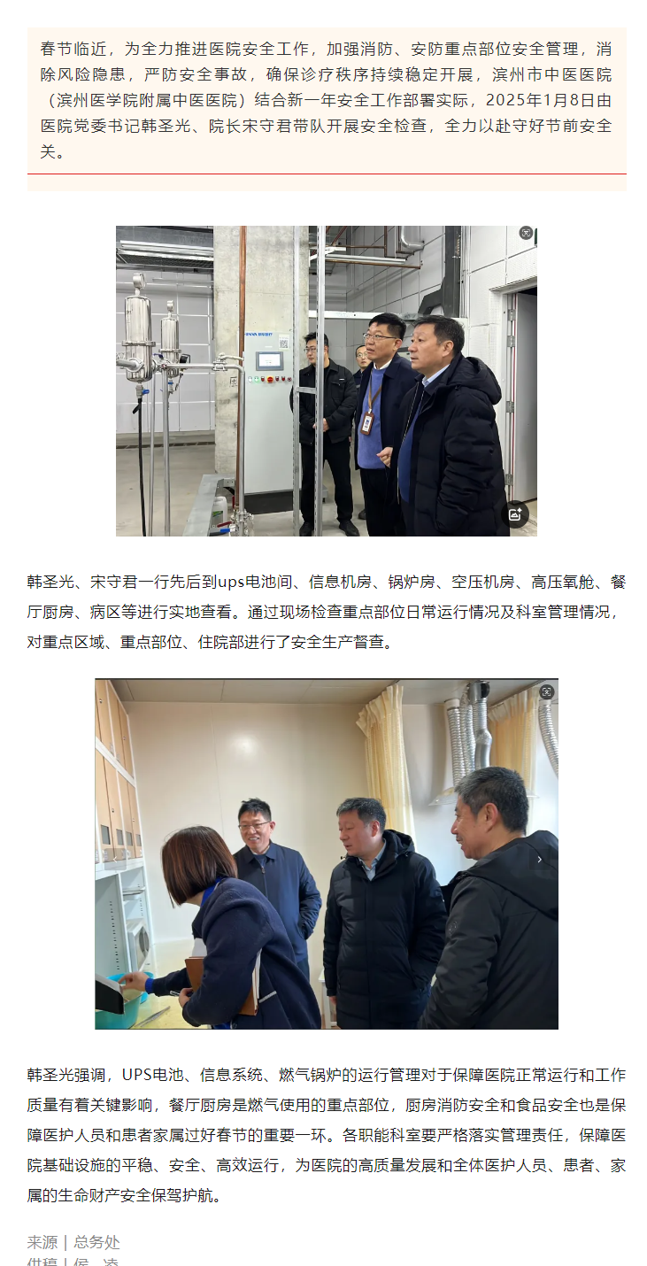 滨州市中医医院(滨州医学院附属中医医院)开展安全生产大检查,严守安全关口,确保春节安宁