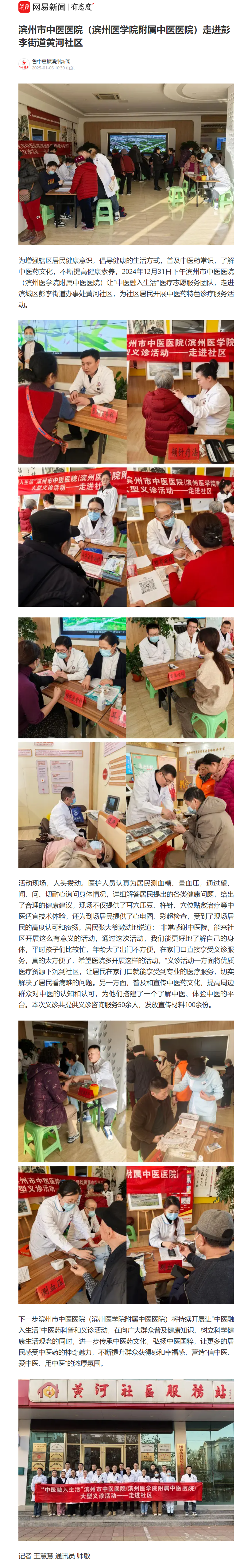 【鲁中晨报滨州新闻】滨州市中医医院(滨州医学院附属中医医院)走进彭李街道黄河社区