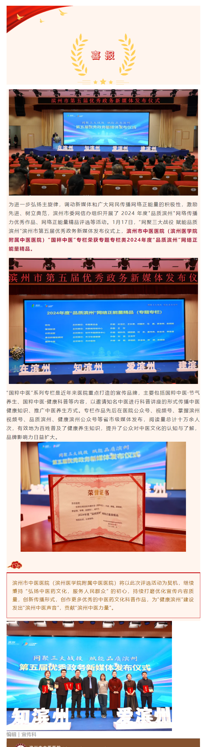 喜报 | 滨州市中医医院“国粹中医”专题栏目荣获2024年度 “品质滨州”网络正能量精品