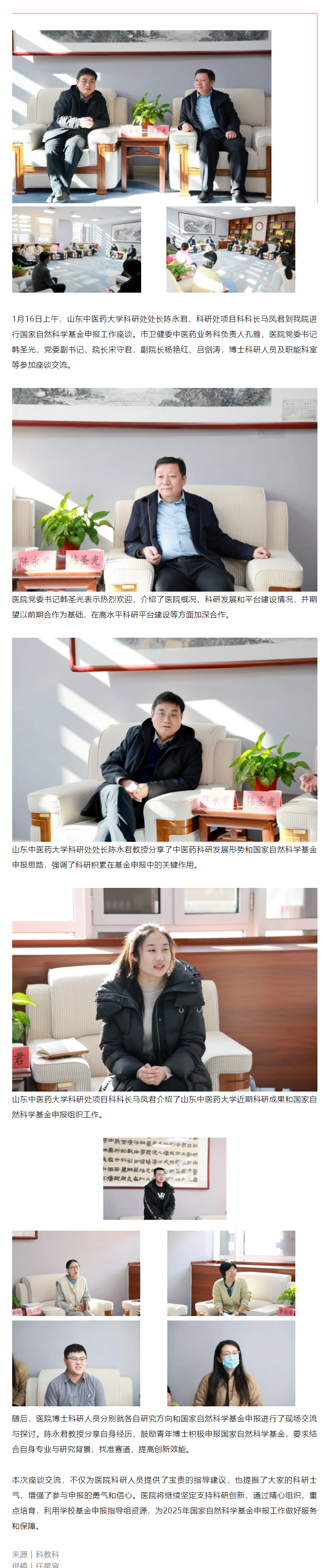 山东中医药大学科研处处长陈永君到我院座谈指导