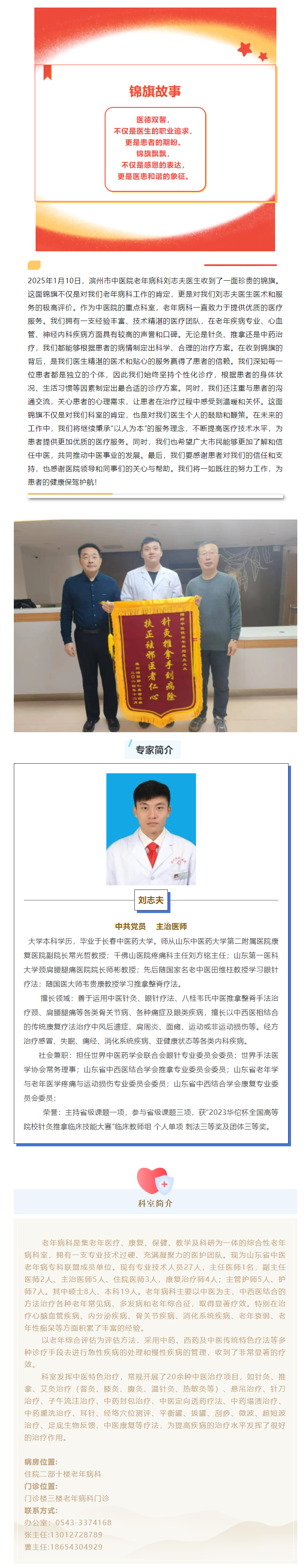 锦旗故事 | 滨州市中医医院(滨州医学院附属中医医院)老年病科收到感谢锦旗