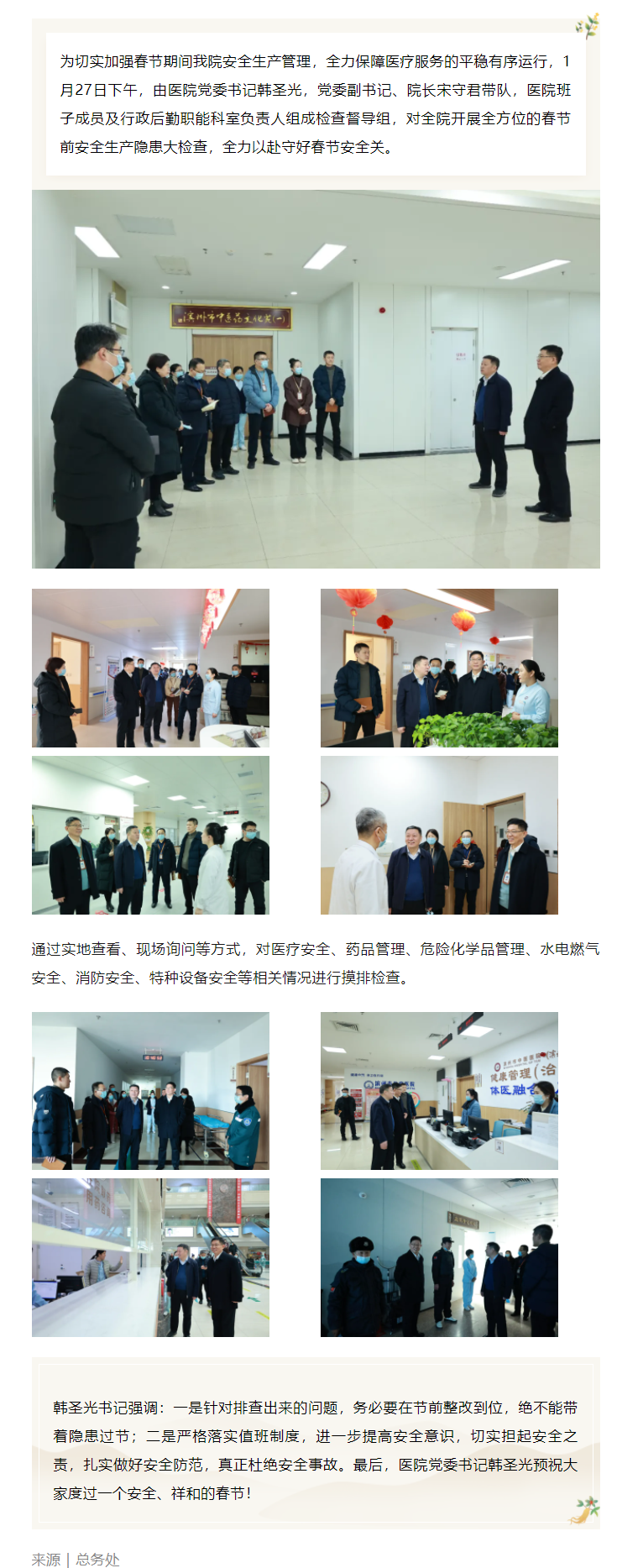 滨州市中医医院(滨州医学院附属中医医院)开展安全生产大检查,为春节安全“保驾护航”