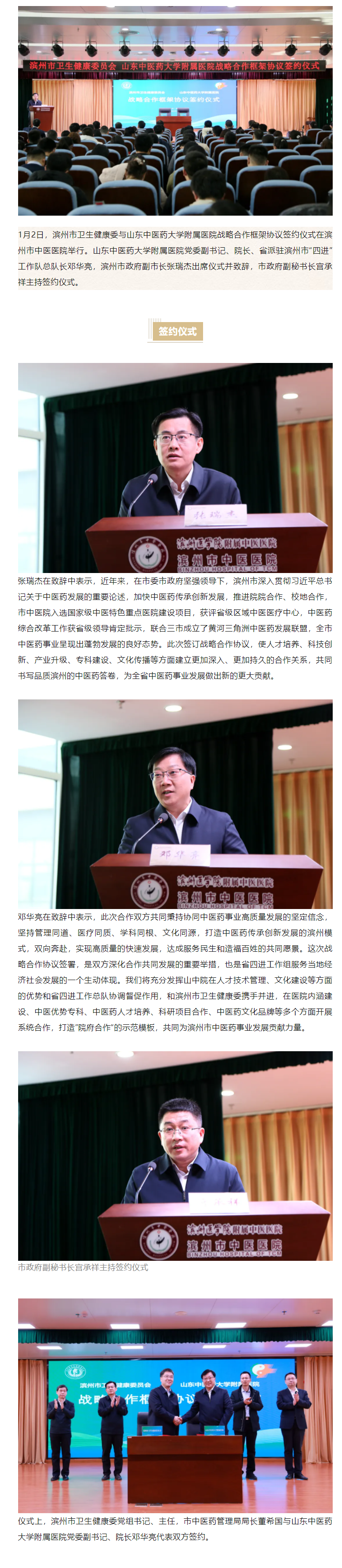 滨州市卫生健康委与山东中医药大学附属医院签署战略合作框架协议签约暨培训、义诊系列活动在我院顺利举行