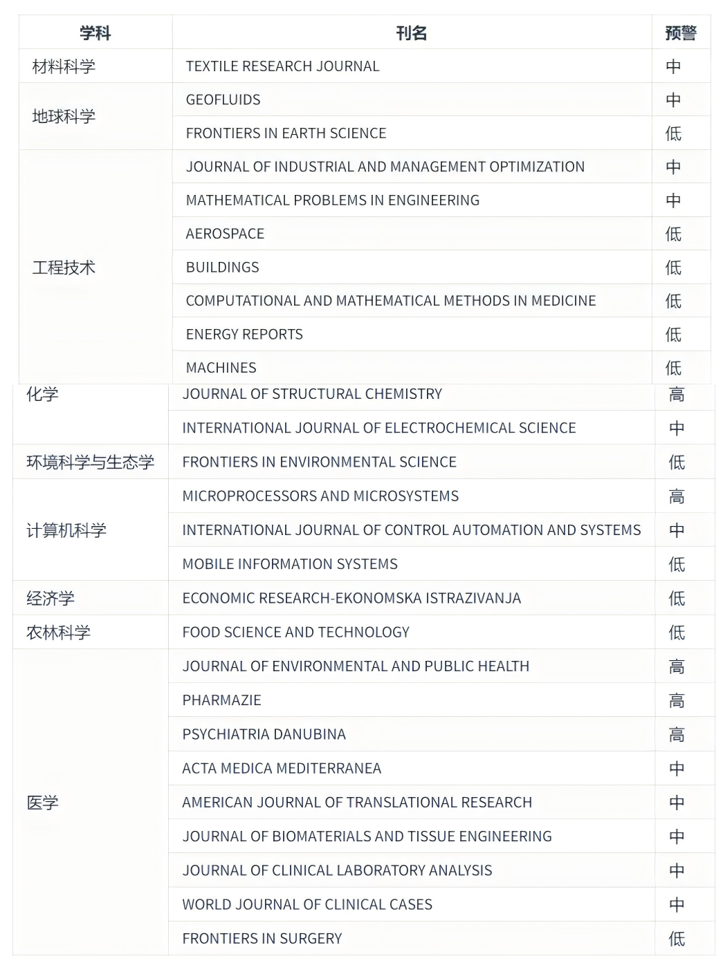 2024年的《国际期刊预警名单(试行)》包括24本期刊,其中23本期刊有最新中科院分区,包含11本医学期刊,1本生物期刊,2本计算机期刊,1本环境生态期刊,6本工程期刊,2本材料期刊。