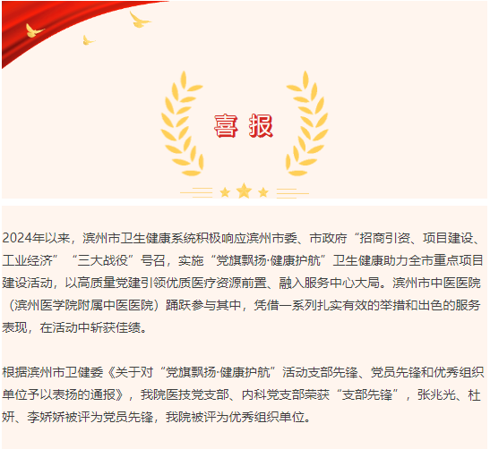 喜报!“党旗飘扬·健康护航”助力全市重点项目建设活动,市中医医院受到通报表扬