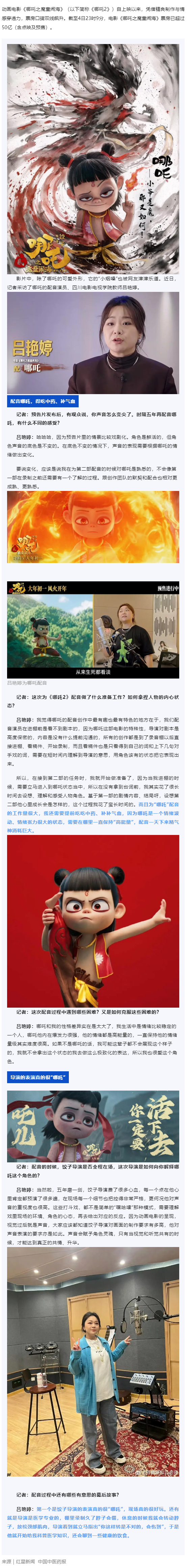 哪吒配音演员吕艳婷:给哪吒配音精气神消耗大,要提前吃中药、补气血
